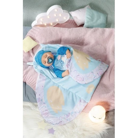 „HuuuHuuu, hier schläft Baby Annabell im Nu! Zuerst wird die kleine Träumerin in die Mitte die blaue Puckdecke gelegt, so dass sich ihr Hinterkopf bequem an das Eulengesicht anschmiegt. Die putzigen Öhrchen schauen vorwitzig hinter dem Kopf der Kleinen hervor. Dann werden die Seitenteile in der bekannten Wickeltechnik nach innen geklappt. Die erinnern nicht nur an Flügel, sondern sind auch mit welchen bedruckt. So schön eingepuckt in ihrer Schlummereule schläft Baby Annabell ganz entspannt ein. Süße Träume! Original Accessoire für die Baby Annabell Markenspielpuppe. Für Puppen in 36cm und 43cm geeignet. Das hochwertige Zubehör fördert die Fantasie und bringt neue Spielanregungen und –möglichkeiten. Baby Annabell Sweet Dreams Pucksack.