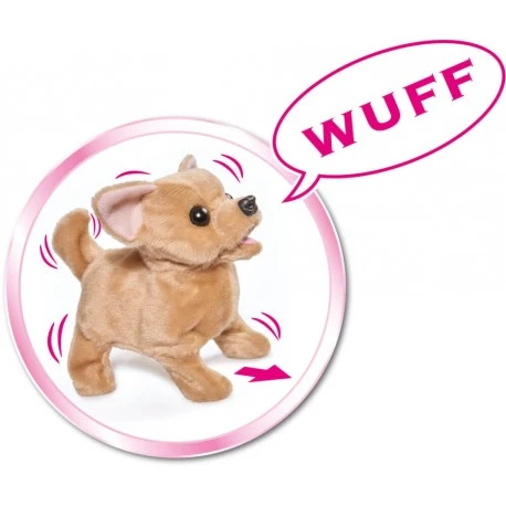 Der süße ChiChi LOVE Baby Puppy kann laufen, bellen und mit dem Schwanz wackeln. Der kleine Chihuahua ist 15cm groß und für Kinder ab 5 Jahren geeignet. Batterien 2x 1,5V-R6 sind nicht enthalten..