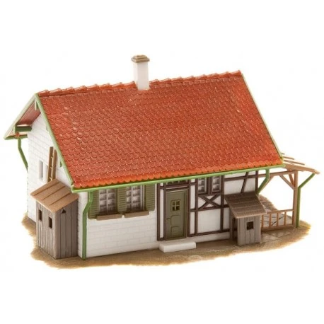 Ländliches Häuschen mit Vordach und kleinen Anbauten..