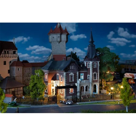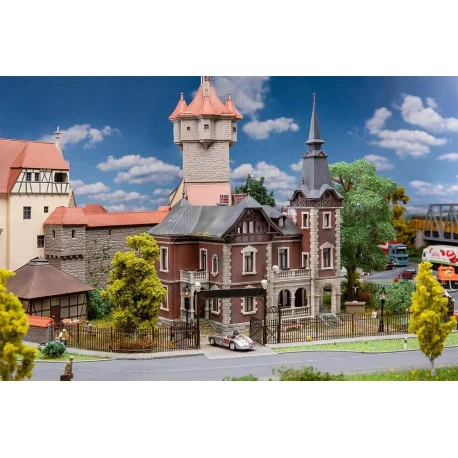 Mit dem Charme der Jahrhundertwende. Prächtige Villa mit Turmanbau, überdachtem Säuleneingang, zwei Balkonen, schmückenden Fassadenelementen sowie Zierfachwerk in den Dachgeschossen.