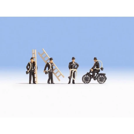 Kaminkehrer bei der Arbeit.Das hübsche Set enthält vier Schornsteinfeger in ihrer typisch schwarzen Arbeitskleidung. Zwei Schornsteinfeger tragen eine Leiter, einer fährt auf dem Fahrrad. Schornsteinfeger ist ein Handwerksberuf, der sich mit der Reinigung und Kontrolle von Feuerstätten beschäftigt. Der sogenannte schwarze Mann gilt in weiten Teilen der Welt als Glücksbringer. Wer ihn/sie berühre, habe Glück (im neuen Jahr). Die Modellfiguren in unserem Set sind im Maßstab 1:87 (Spur H0, ca. 2 cm hoch) ausgeführt und handbemalt.Sie eignen sich ideal für die Dekoration von Modellszenen und als kleines Glücksgeschenk..