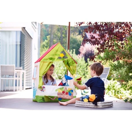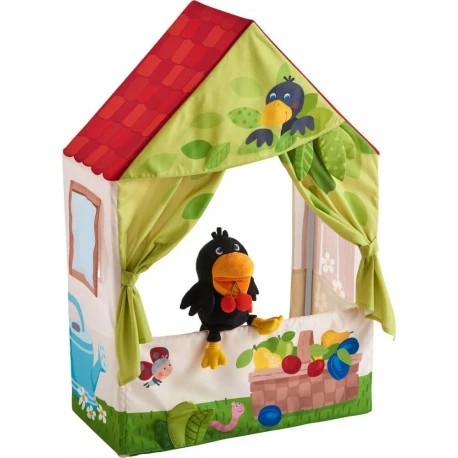 Vorhang auf! Hier warten spannende Abenteuer mit Rabe Theo und seinen Freunden im Obstgarten auf kleine Puppenspieler. Das HABA Puppentheater lässt sich via Kunststoffstangen aufbauen: verbinden, fixieren – und schon kann die Vorstellung beginnen! Lieferung ohne Handpuppen..