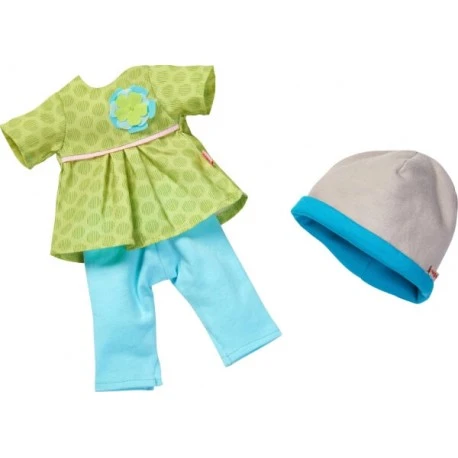 Inhalt: 1 Kleid, 1 Hose, 1 Mütze. Leicht an- und ausziehbar. Waschbar bei 30° C. Aus Polyester. Ab 18 Monaten..