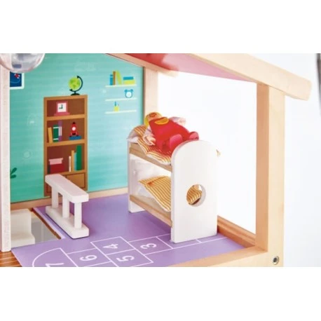 Home, sweet home! Diese voll ausgestattete Puppen-Villa bietet deiner Puppenfamilie ein wunderschönes zuhause. Enthält Küche, Wohnzimmer, Essbereich, zwei Balkons, Badezimmer, Vorgarten, einer Lampe auf jedem Stockwerk, Klingel und vielem mehr. Produkt-Maße: 80,2 x 29 x 29 cm..