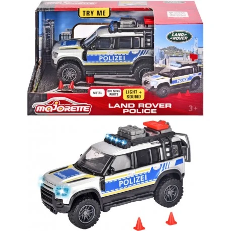 Land Rover Police Freilauf,Die-cast Karosserie, Licht, Sound, Rücktüre z. Öffnen, Zubehör, Gummireifen, 12,5 cm,TB, Try Me, mehrfarbig, Deutsche Version.