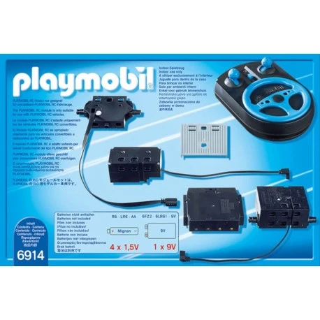 RC-MODUL-SET zum Aufrüsten aller RC-fähigen PLAYMOBIL-Fahrzeuge. Sender benötigt 1x 9V-Block-Batterie. Batteriekasten benötigt 4x 1,5V Mignon-Batterien (keine Batterien enthalten). Ab 6 Jahren..