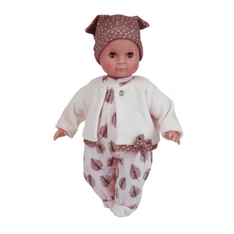 Mein erstes Schlummerle, die beliebteste und bekannteste Puppe, ohne Haare für die Kleinsten. Ein unverwechselbares Gesicht vereint Qualität und Spielwert und begeistert schon seit Generationen unsere Puppenmuttis.Die Puppe wird in unserer eigenen Puppenmanufaktur in Rauenstein/Thüringen hergestellt. Arme, Beine und Kopf sind aus Vinyl, sie hat lustige braune Schlafaugen und gemalte Haare. Es trägt einen rose Overall mit braunen Blättern bedruckt, eine weiße Jacke und einen braun getupfte Mütze. Die Kleidung ist leicht an- und ausziehbar und bei 30 Grad per Hand waschbar. GRATIS STICKEREI: Als besonderen Service bieten wir an, eine individuelle Widmung (z.B. Name und Geburtsdatum der Puppenmutti) ohne Aufpreis auf den Puppenbauch zu sticken. Wenn Sie eine ganz persönliche Puppe für Ihr Kind möchten, dann geben Sie Ihre Wunschbestickung oben in die dafür vorgesehenen Felder ein..