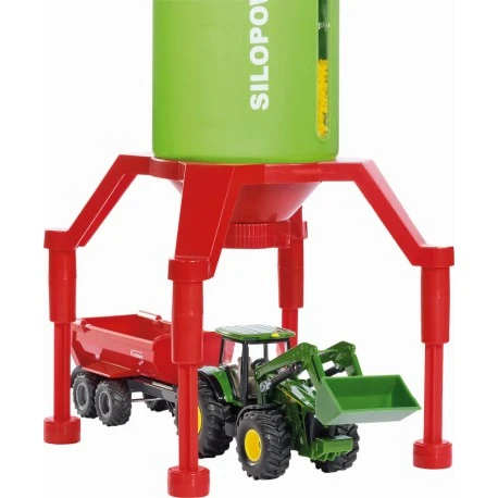 Das imposante Standsilo mit einem Fassungsvermögen von 1,2 Litern ist der Mittelpunkt jeder SIKU-Farm im Kinderzimmer. Zum Beladen können Traktoren mit Anhänger oder Lastwagen mit Auflieger unter das SILO fahren. Durch in der Höhe verstellbare Stützen ist die Durchfahrtshöhe für SIKU-Modelle in den Maßstäben 1:87 bis 1:32 flexibel anzupassen. Die Füllstandsanzeiger am Aufbau informieren jederzeit, ob noch genug Material zum Verladen bereit steht. Ein gut dosiertes Beladen der Fahrzeuge wird durch einen stufenlos drehbaren Auslass ermöglicht. Zum Befüllen des Behälters ist der mit einem Schraubverschluss gesicherte Deckel abnehmbar. Empfohlen wird ein grobkörniges Schüttgut. Ab 3 Jahren..