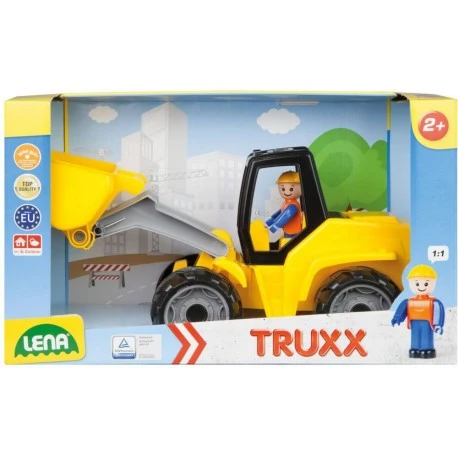 Mit seinen vielen Spielfunktionen ist der Truxx Schaufellader von LENA ideal für den Sandkasten und scheut selbst Wasser nicht. Mit der lustigen Spielfigur macht das Spielen gleich doppelt Spaß. Die stabile Bauweise und die einfache Bedienung ist genau das Richtige für kleine Kinderhände. Hartreifen, verzinkte Achsen, mit Figur. Ab 2 Jahren..
