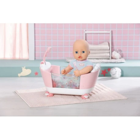 Baby Annabell bekommt eine eigene Badewanne. Durch einen steigenden Wasserstand und tolle Licht- und Soundeffekte wird das Pretend Play in der Wanne zum echten Erlebnis..